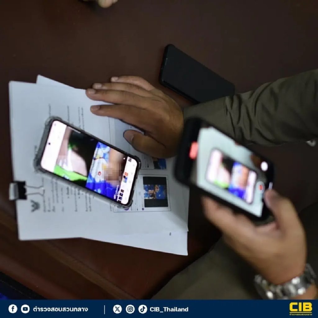 On September 19, 2025, the Central Investigation Bureau (CIB), by the Anti-Trafficking in Persons Division (ATPD), jointly arrested Mr. Somchai (last name withheld), aged 21, on charges of: “Possession of child pornography for the purpose of seeking sexual benefit for oneself or others and forwarding child pornography to others; for the purpose of trade or by trade, for distribution or for public display; making, producing, possessing, importing or causing to be imported into the Kingdom, exporting or causing to be exported out of the Kingdom, taking away or causing to be taken away, or making widespread by any means such child pornography (additional charge: human trafficking by seeking benefit from the production or distribution of child pornographic objects or media).” Arrest location: Mueang Chaiyaphum District, Chaiyaphum Province.